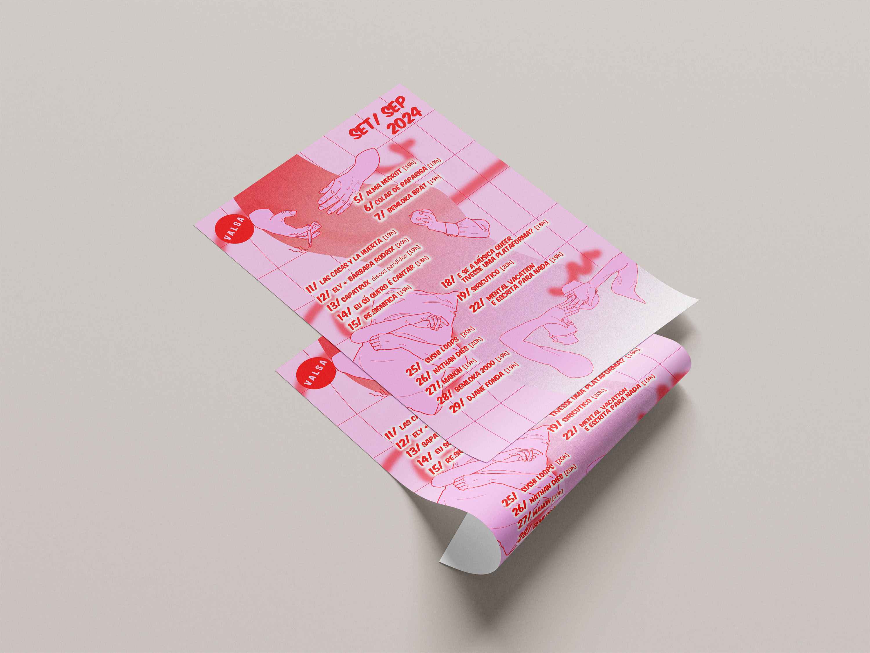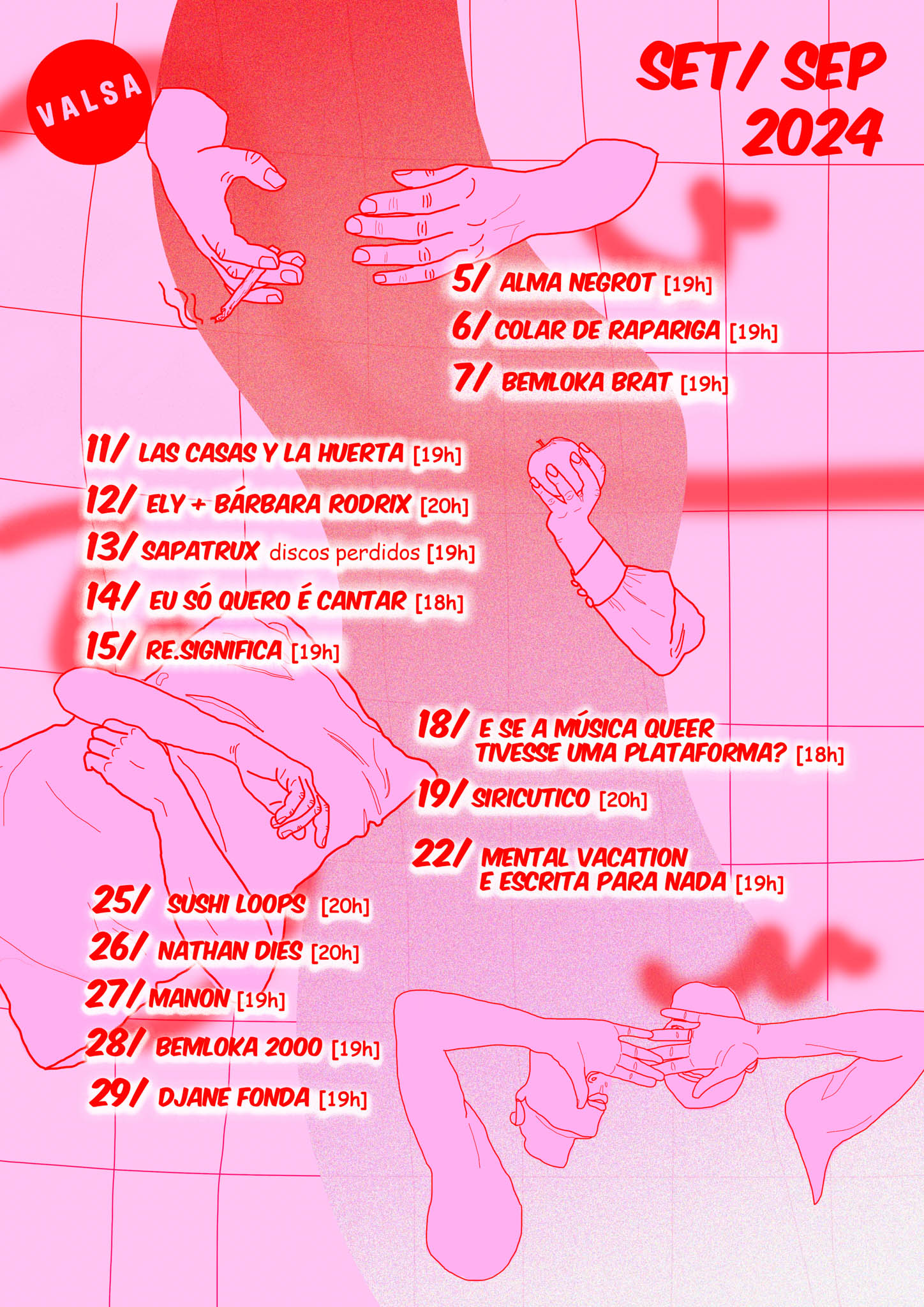 — Visual identity for september 2024 monthly program at the communal bar and venue Valsa in Lisbon.